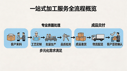 采用客戶來料 → 專業(yè)表面處理 → 成品交付的一站式加工模式,提供從工藝定制、批量生產(chǎn)、品質(zhì)檢測到準(zhǔn)時交付的全流程服務(wù),滿足客戶小批量試產(chǎn)、大批量量產(chǎn)的多元化需求。